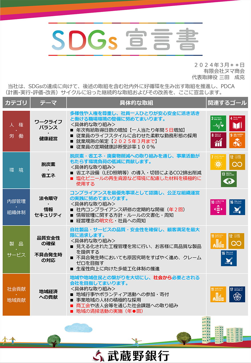 - 塩化ビニールの再生資源など環境に配慮した材料を積極的に使用する